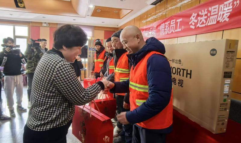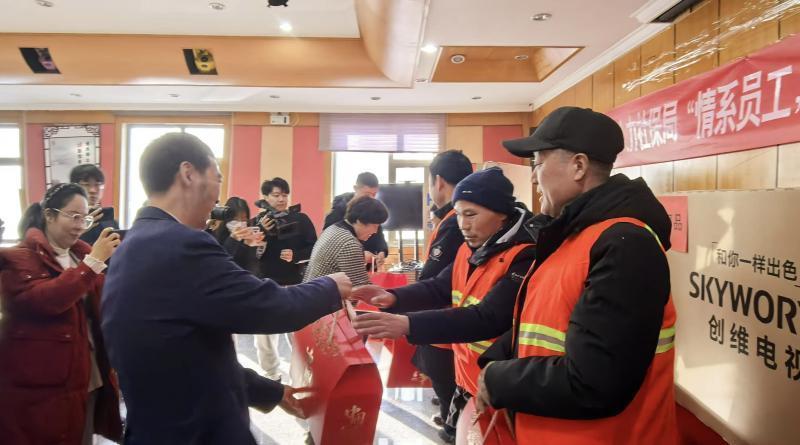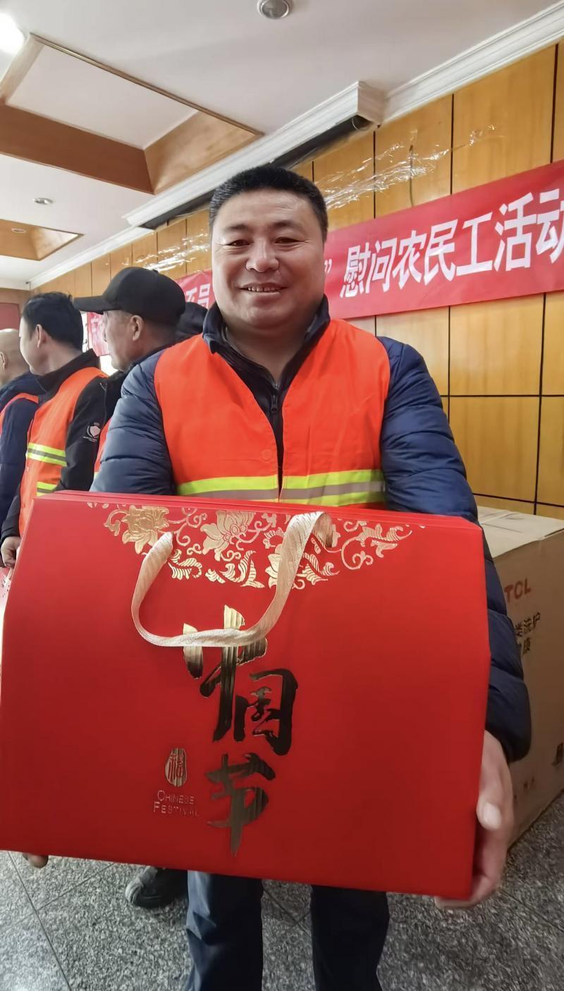 现场10名园林绿化工代表拿着新春大礼包,个个喜气洋洋。来自河北从事树木倒伏清理工作的老张说:“我来北京打工已经5年了,公司有集体宿舍,食堂一日3餐,都是免费。今年春节我在北京过年,坚守岗位好好工作,年后再调休回家。过节之前领导专门来看我们,还送了这么多慰问品,我很感动。”